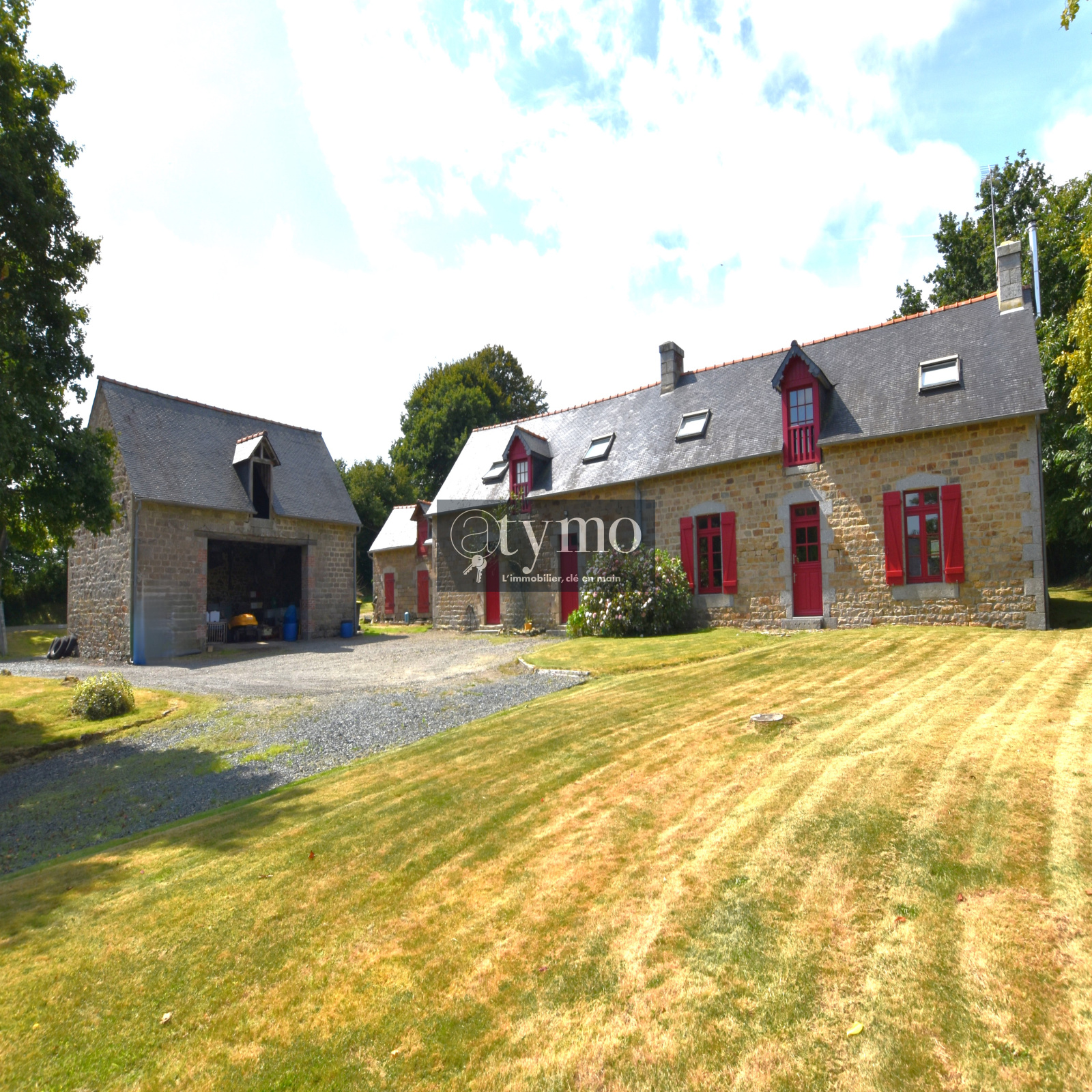 Vous recherchez un bien de caractère pour poser vos valises à la campagne en famille ? Cette magnifique propriété se compose d'une longère, d'un gite, d'un hangar, de dépendances, et de deux partures. Le tout est situé dans un environnement verdoyant, calme et sans vis-à-vis et à seulement 2km de la RN12. La bâtisse principale allie le charme de l'ancien (pierre) et le moderne par sa rénovation. Elle se compose au rez-de-chaussée d'une grande pièce de vie lumineuse de 58m² avec un poêle à bois et un accès direct à la terrasse. La cuisine ouverte est fonctionnelle avec ses nombreux rangements . WC séparés. A l'étage, les 4 chambres sont charmantes avec leurs poutres apparentes. Elles se partagent une salle de bain. WC séparés. Surface habitable : 150 m². Surface au sol: 180m². Pompe à chaleur et poêle à bois récent. DPE en C. Estimation des coûts annuels entre 1590€ et 2180€. Extension possible grâce à la dépendance attenante. Un gite de 42m² indépendant vous permettra de percevoir un loyer mensuel de 360€ (locataire en place). Non soumis au DPE. Un hangar de 150m² permettra de faire du stockage ou d'abriter votre bateau ou camping-car ou encore d'être transformé en boxes pour vos chevaux. Cette propriété est le paradis pour vos animaux! Deux parcelles agricoles d'une surface de 1,7 ha font partie de la propriété. Une autre dépendance pourra être fcailement transformer en garage, salle de jeux ou espace bien-être. LES PLUS: Terrain de pétanque, chenil, appentis...Honoraires charge vendeur. Les informations sur les risques auxquels ce bien est exposé sont disponibles sur le site Géorisques : www.georisques.gouv.fr. Le Coup de coeur assuré! Contactez-moi vite pour une visite! Réseau immobilier ATYMO FRANCE. Contact: Aline RIOU - 07 69 56 37 36 - aline.riou@atymo-france.com .