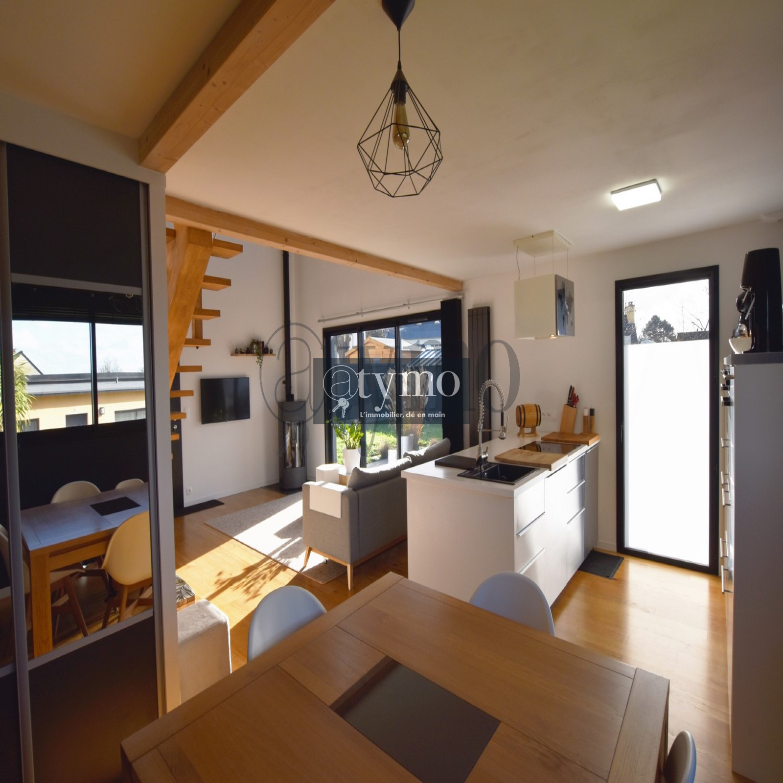 Vous recherchez une maison contemporaine et design pour installer votre famille à deux pas du centre ville? Ce bien rare construit en 2015 va vous séduire par son architecture et sa décoration. La pièce de vie de 40m² est lumineuse et très chaleureuse avec son parquet bois et son poêle à granulés. Elle est triple : salon avec une très belle hauteur sous plafond, cuisine équipée et séjour avec rangement. Accès direct à la terrasse. Cellier attenant. WC séparé. La suite parentale est agréable avec sa salle d'eau privative. A l'étage, les deux chambres feront le bonheur de vos enfants. La mezzanine servira de salle de jeux, espace détente et pourra être transformé en quatrième chambre. Surface habitable : 104m². Le jardin clos de 583m² est idéalement exposé. Le coup de coeur pour ce bien est assuré! Vous n'avez que vos valises à poser! Commerces et services à proximité. RN 12 à quelques minutes. Honoraires charge vendeur. Laissez-vous charmer par une visite.