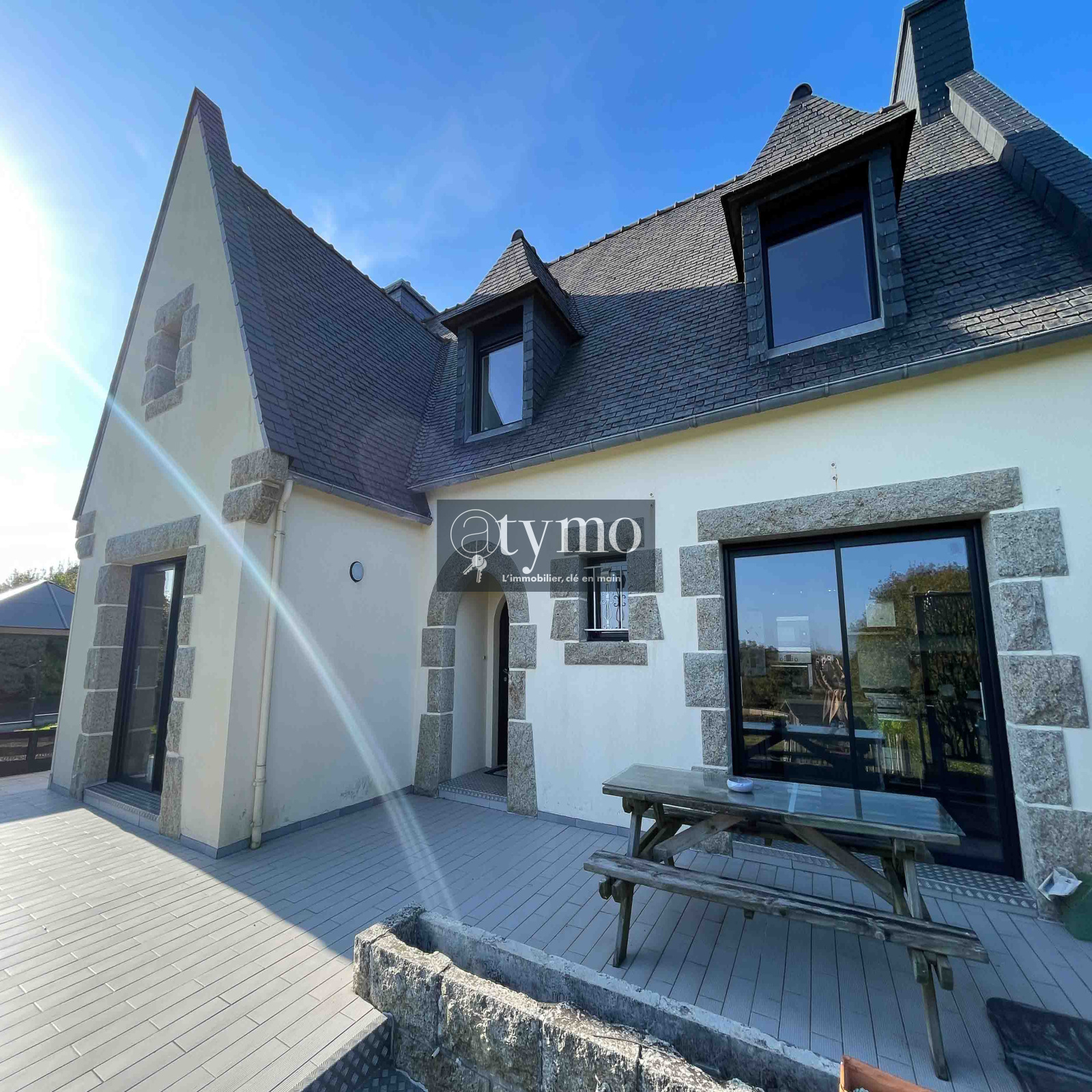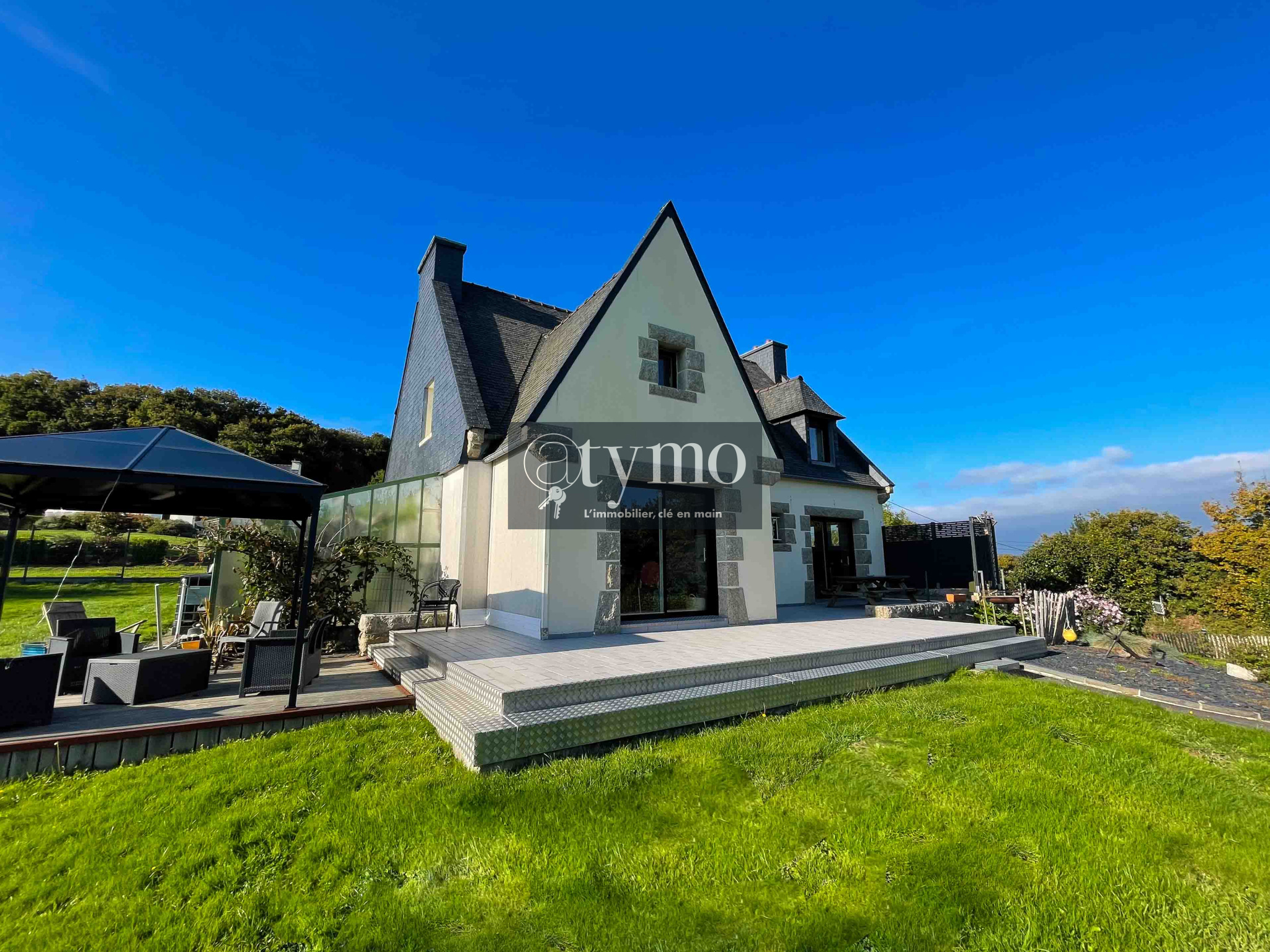 DAOULAS Vous recherchez une maison pour votre famille dans une commune dynamique et proche des grèves ! Cette maison vous offre de belles possibilités : de nombreuses chambres confortables, un très grand sous-sol de 100 m², un carport et une très belle serre adossée à la maison. En entrant dans ce bien de 1977, vous serez immédiatement séduits par la pièce de vie spacieuse et lumineuse, agrémentée d'un insert bois convivial. Profitez de l'accès direct à la terrasse idéalement exposée au sud et au jardin clos. La cuisine est entièrement équipée et séparée. WC séparés. Ce rez-de-chaussée est doté d'une chambre lumineuse et d'une salle d'eau. A l'étage, le palier dessert quatre chambres confortables et se partagent une belle salle de bain. Le wc est séparé. Le sous-sol quant à lui est très volumineux et vous permettra d’y installer votre activité artisanale, ou bien votre bricolage. Vous bénéficiez d’une cave à vin. Surface habitable: 154 m². Surface au sol: 255m². Terrain de plus de 1500 m² avec carport pour votre camping-car et une serre. DPE en D. mandat charge acquereurs : net vendeur 365000€ honoraires 12000€ .Coût annuel théorique énergétique compris entre 2650€ et 3620€. Les informations sur les risques auxquels ce bien est exposé sont disponibles sur le site Géorisques http://www.georisques.gouv.fr. Laissez vous tenter par une visite! Réseau immobilier ATYMO FRANCE Contact: Pascale Languenou - 0766276715 pascale.languenou@atymo-france.com
